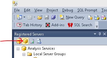 - Open up SSMS and select the Analysis Services server type in the Registered Servers window.