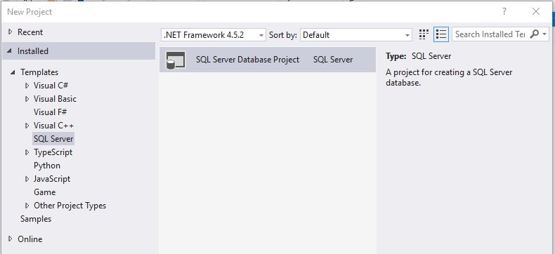 That’s right, the only SQL Server project types that are installed with Visual Studio are database projects. No SSIS, no SSAS & no SSRS. That was very disappointing. Also note that it installed the templates for Visual C#, Visual Basic, etc., when the only feature that I requested to be installed was SQL Server Data Tools. I guess that’s why this install took 5GB of disk space as opposed to the 3GB that SSDT required.